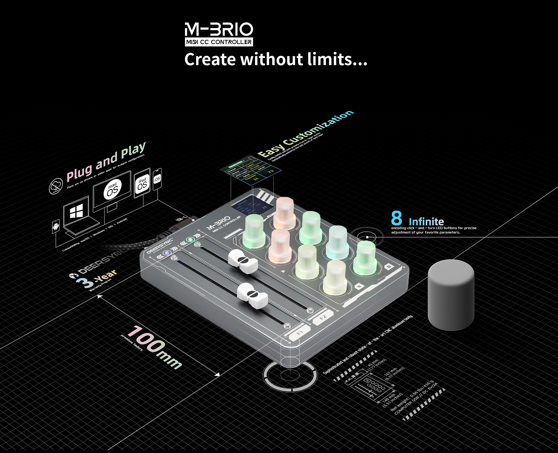 M-Brio is a multi-platform, portable, customizable remote MIDI CC (Continuous Controllers) control for DAWS, instruments, video and lighting applications made for Windows macOS, iOS and Android. This device allows you to add movement, expression, and variation to your compositions either if you are a musician, producer, composer, or a MIDI enthusiast . M-Brio is plug-and-play ready and fully configurable no drivers and no additional editing apps needed.