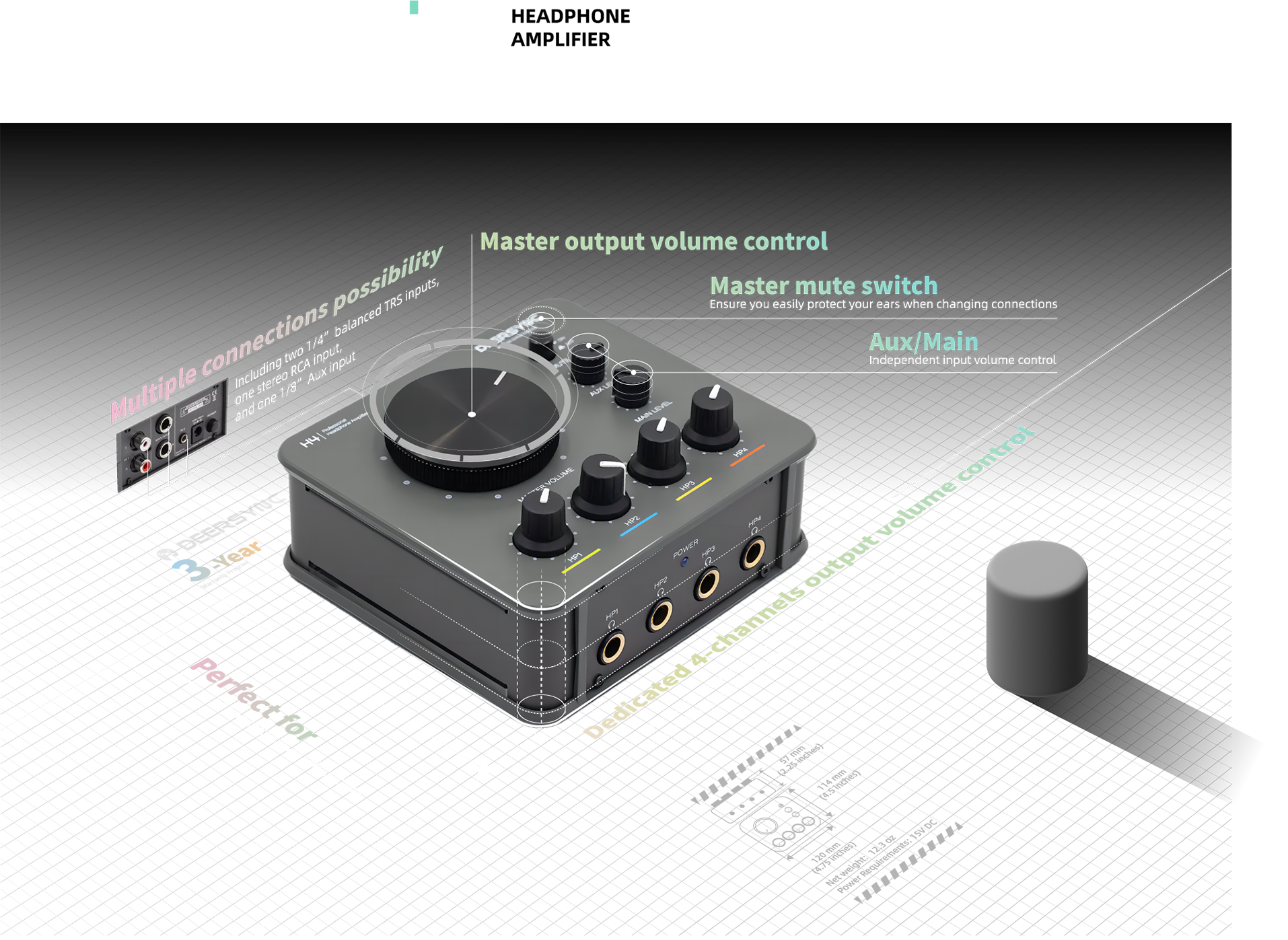 Unleash the power of sound with the Deersync H4, a cutting-edge portable four-channel headphone amplifier designed to redefine your audio experience. Crafted with precision, the H4 boasts three dynamic input channels, featuring two 1/4” balanced TRS inputs, one stereo RCA input, and one 1/8” Aux input, ensuring seamless connectivity with your diverse audio sources. Take control of your auditory journey with the H4's dual-level linkage volume controls for output channels, providing precision through the master control and sub-control features.