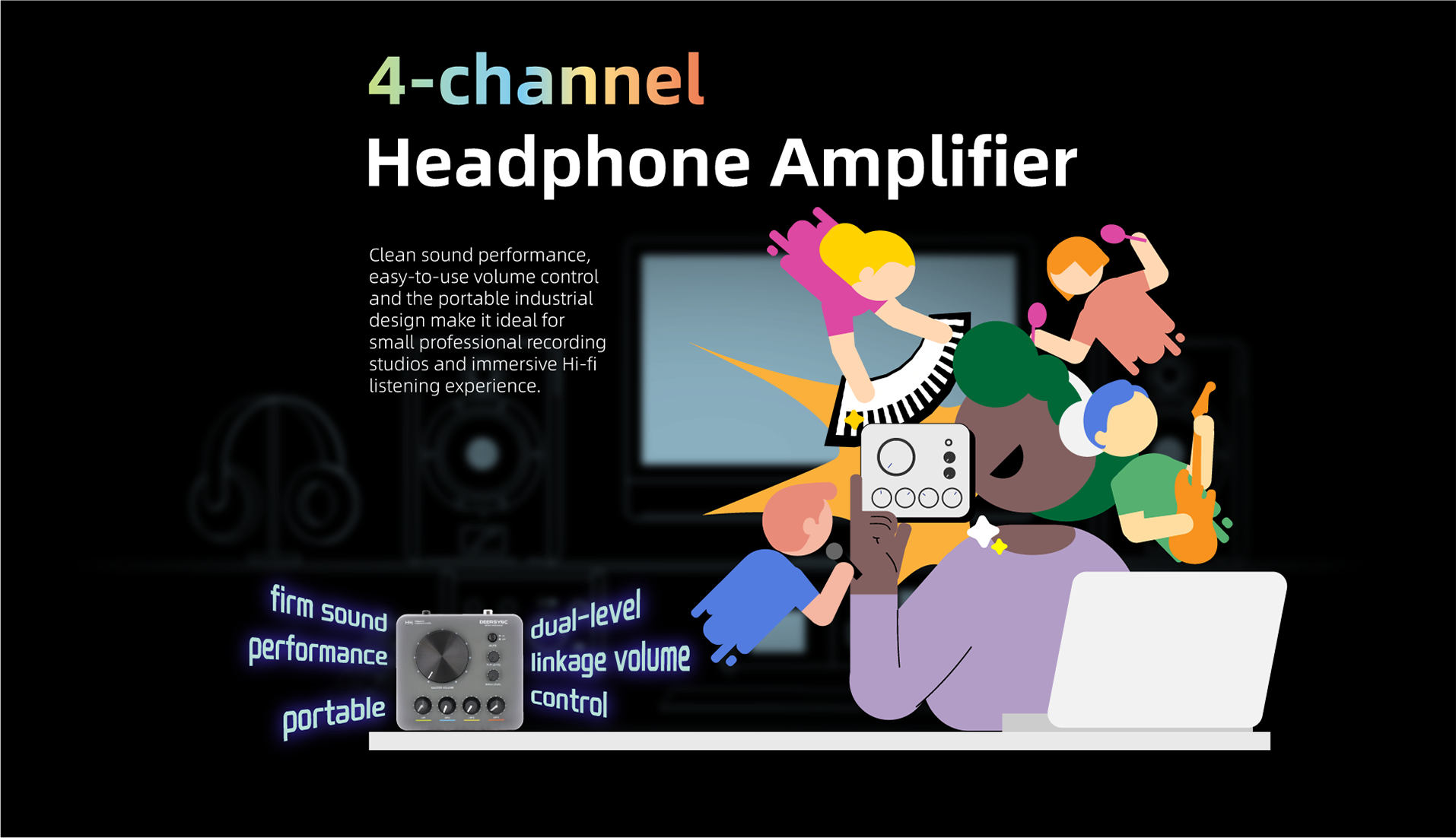 Deersync H4 headphone amplifier is a portable four-channel headphone amplifier.